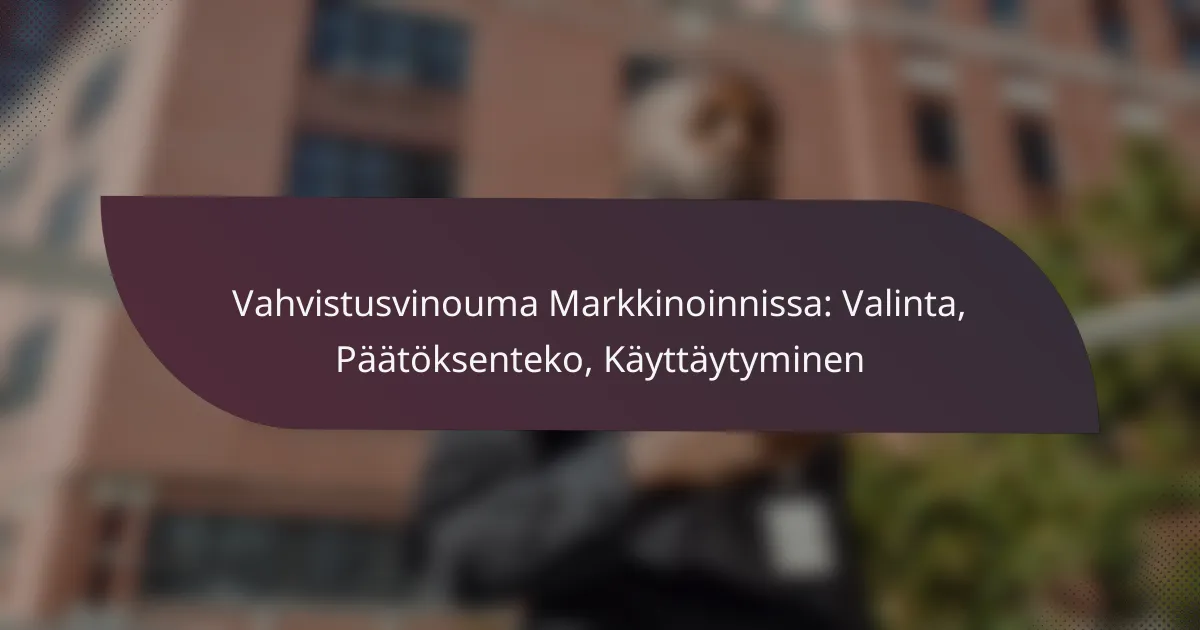 Vahvistaminen markkinoinnissa on keskeinen menetelmä, joka ohjaa kuluttajien käyttäytymistä palkkioiden ja seurausten avulla. Tämä prosessi parantaa asiakkaiden motivaatiota